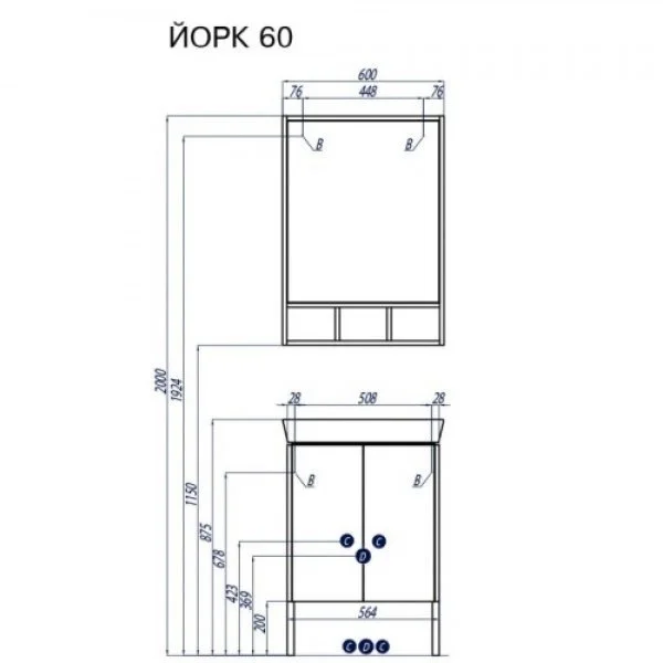 Зеркальный шкаф Aquaton Йорк 60 белый/дуб сонома 1A170102YOAD0