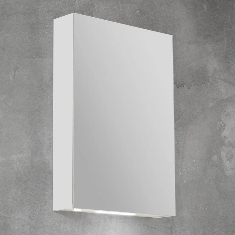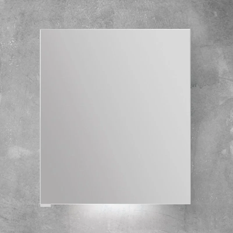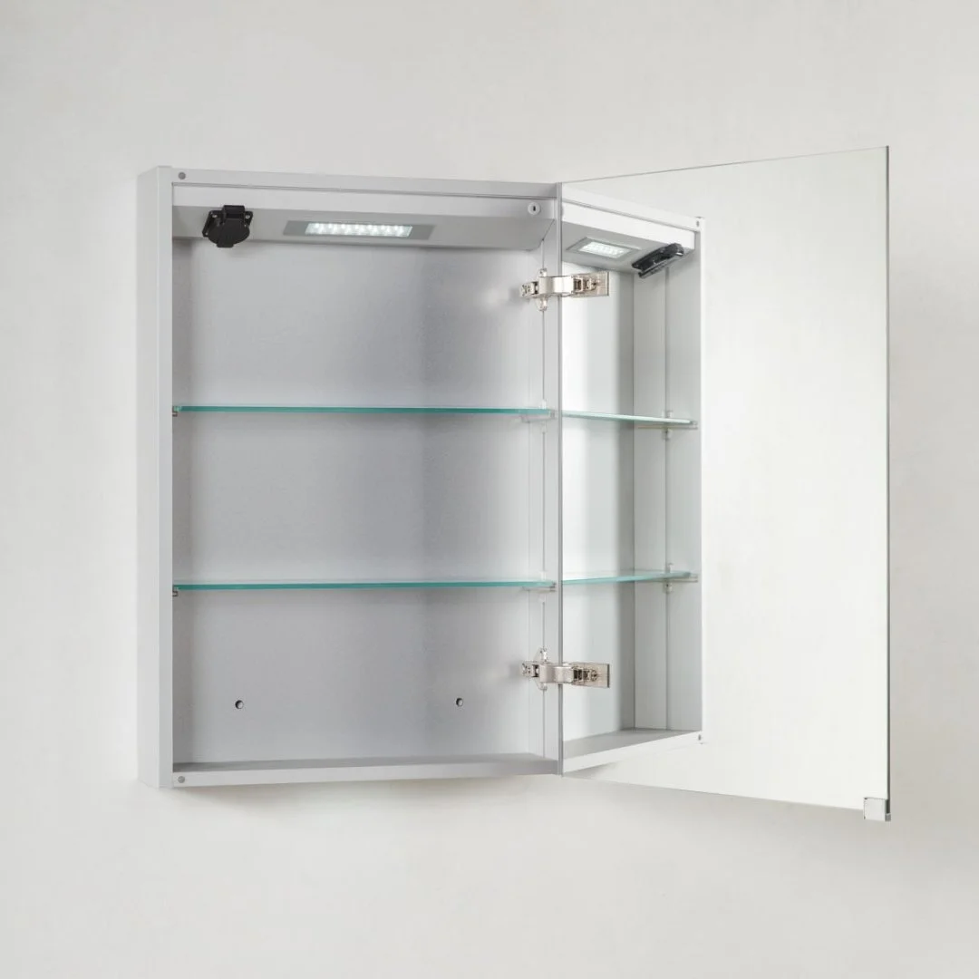 Зеркальный шкаф SPC-1A-DL-BL-600 8W 220-240V 600x130x700 с нижней подсветкой дверей с розеткой и сенсорным выключателем правосторонний