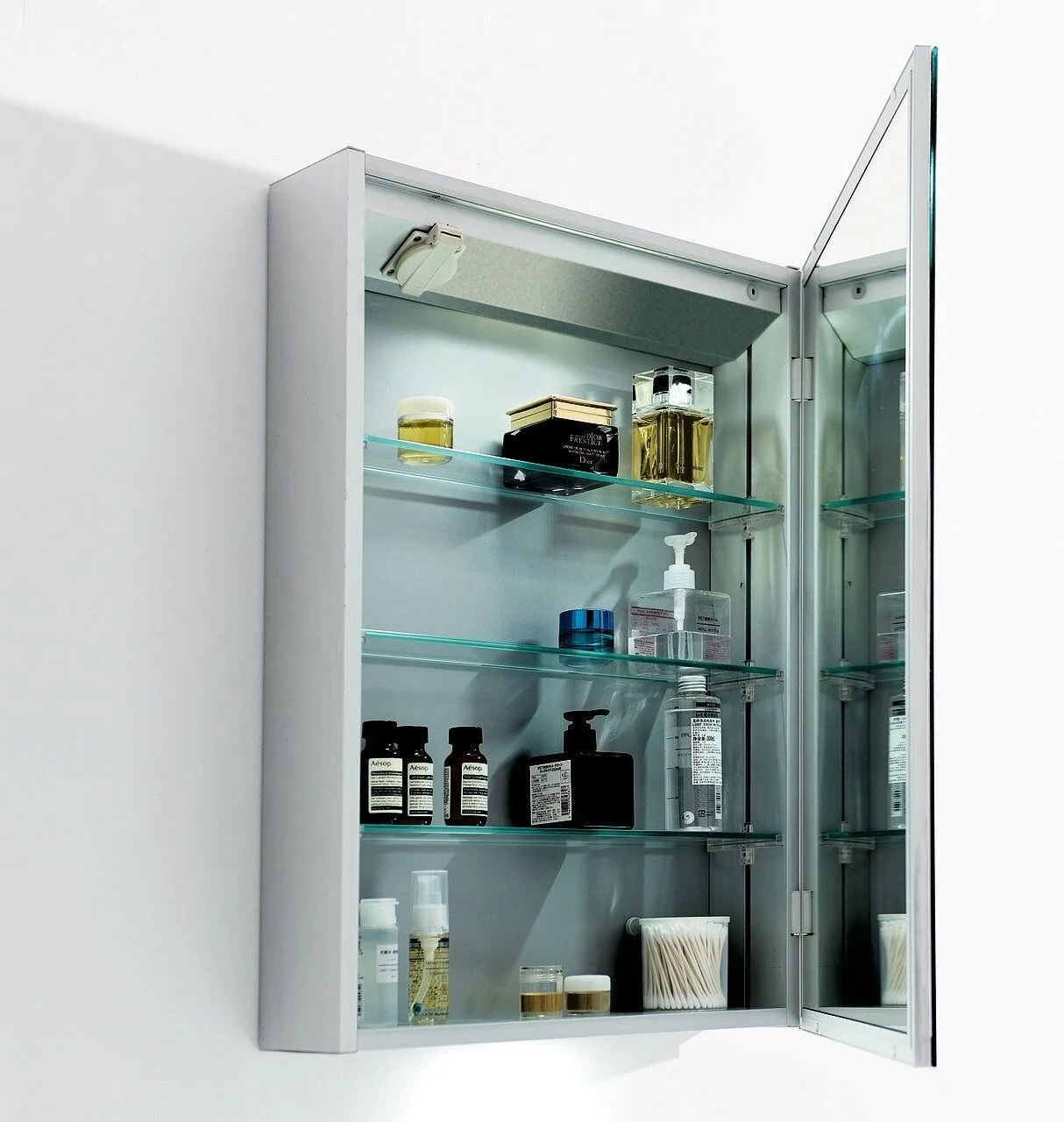 Зеркальный шкаф оснащен нижней и внутренней подсветкой,розеткой,нижним сенсорным выключателем,распашная дверь оборудована двусторонним зеркальным полотном.