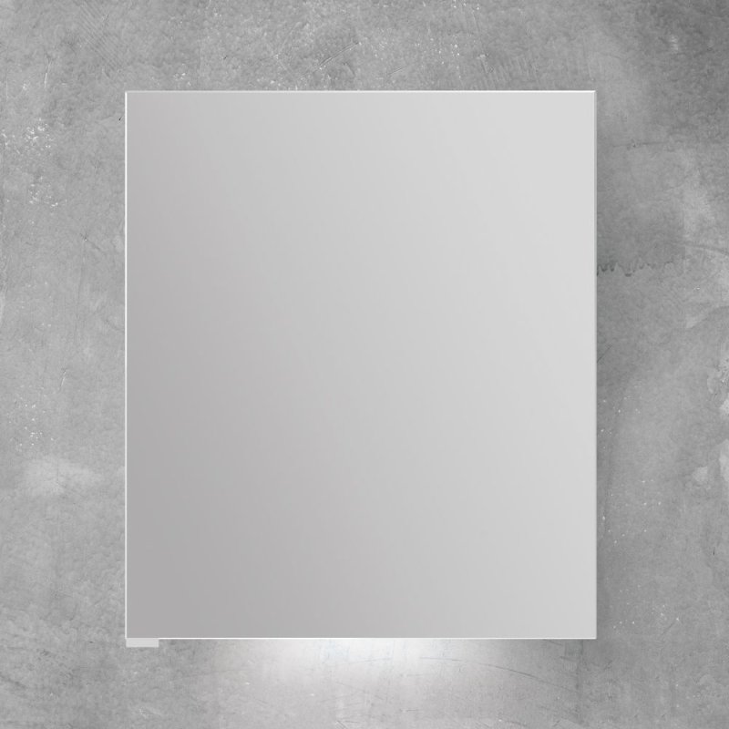 Зеркальный шкаф SPC-1A-DL-BL-600 8W 220-240V 600x130x700 с нижней подсветкой дверей с розеткой и сенсорным выключателем правосторонний
