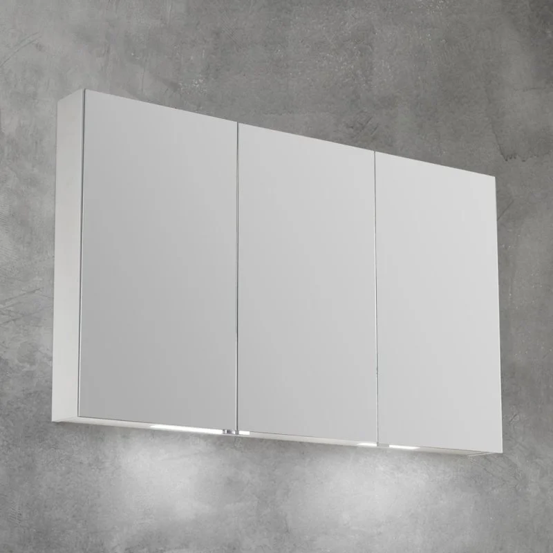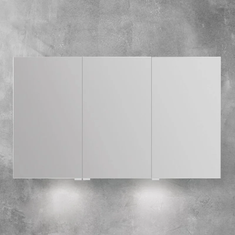 Зеркальный шкаф SPC-3A-DL-BL-1200 8W 220-240V 1200x126x700 с нижней подсветкой дверей с розеткой и сенсорным выключателем