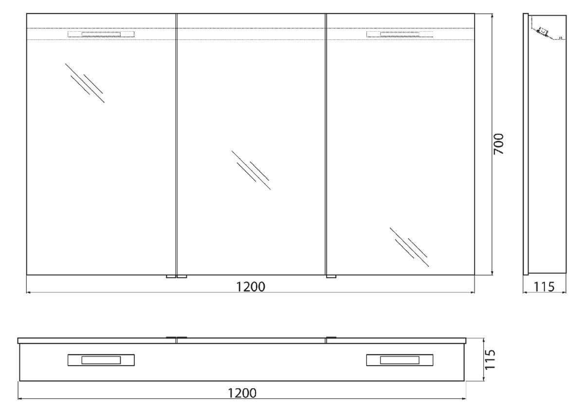 Зеркальный шкаф SPC-3A-DL-BL-1200 8W 220-240V 1200x126x700 с нижней подсветкой дверей с розеткой и сенсорным выключателем