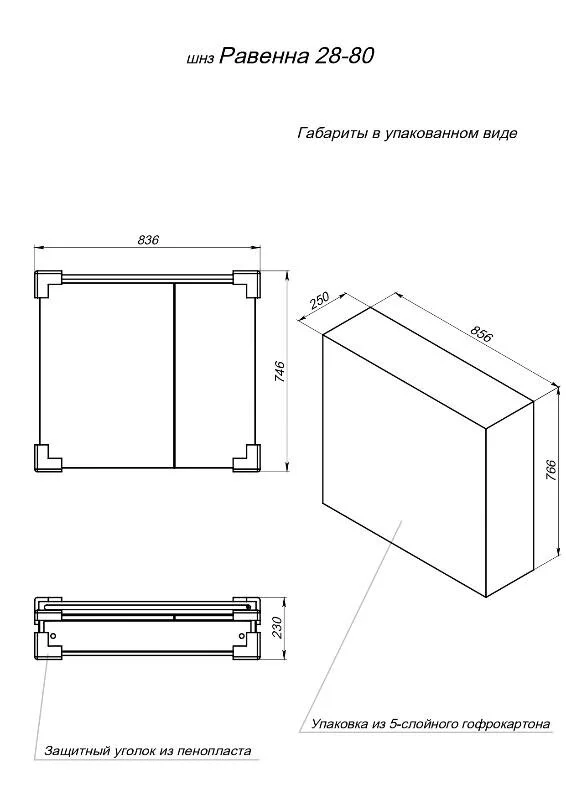 Зеркальный шкаф BRIZ Равенна 80 250 02-28080-00 00 БЕЛ белый