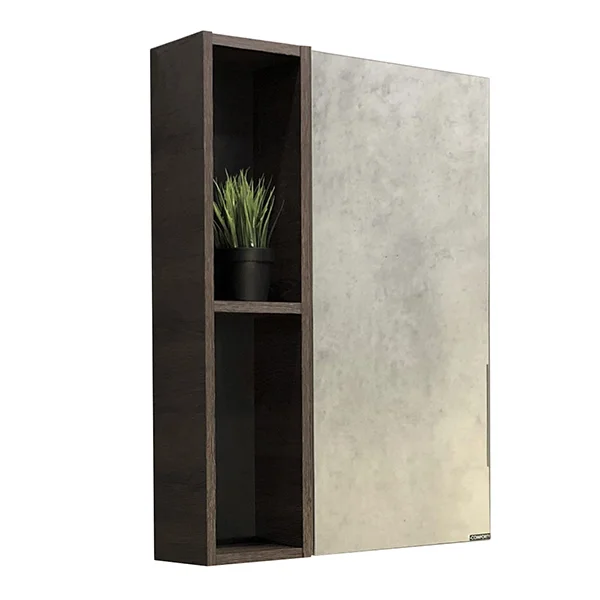 Высококачественное зеркальное полотно с амальгамой на основе серебра. Створка оснащена петлями с плавным закрыванием. Петли у створки снаружи. За зеркальной створкой две горизонтальные полки, в пространстве открытого хранения - одна. Зеркало-шкаф универсально - может быть подвешено в правом и левом варианте.