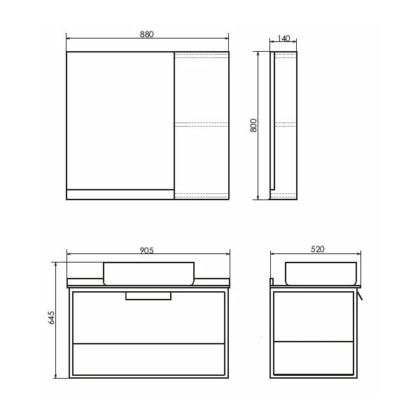 Габариты (ШхВхГ): 880*800*140 мм