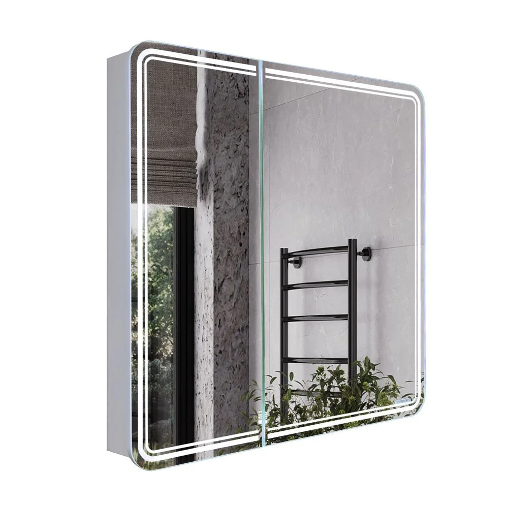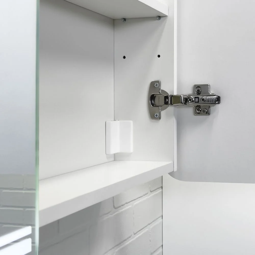 Подвесное зеркало-шкаф со светодиодной подсветкой. Створки оснащены петлями с механизмами плавного закрывания. Высококачественное зеркальное полотно AGC с амальгамой на основе серебра. Корпус зеркального шкафа выполнен из влагостойкого ЛДСП.