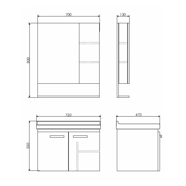 Створка оснащена петлями с плавным закрыванием. За створкой две горизонтальные полки. Высококачественное зеркальное полотно с амальгамой на основе серебра. Удобная полочка для размещения принадлежностей для умывания.
