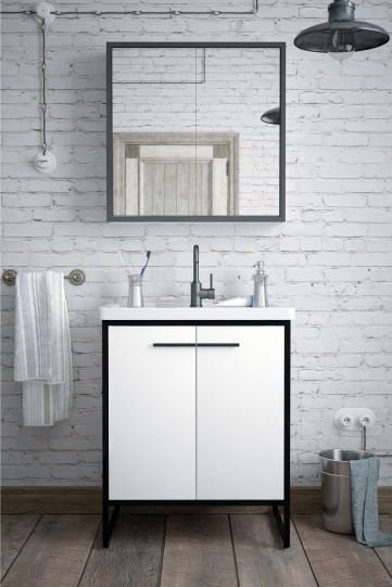 Коллекция выполнена в актуальном стиле "Лофт". Зеркало-шкаф закреплено на металлическом каркасе. У зеркала-шкафа 2 распашные двери разного размера, в которых используются специальные толкатели, чтобы мягко открывать закрывать их. Шкаф является универсальным, то есть перевернув его, можно расположить большую дверь справа или слева.