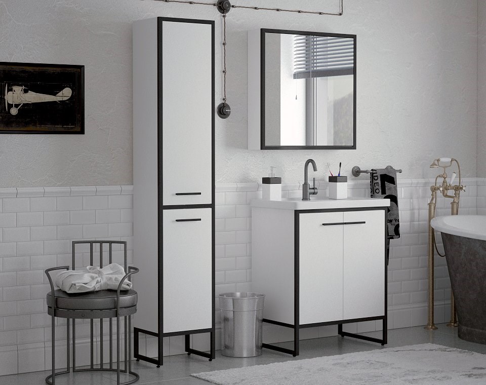 Зеркальный шкаф Corozo Айрон 70, черный/белый SD-00000408