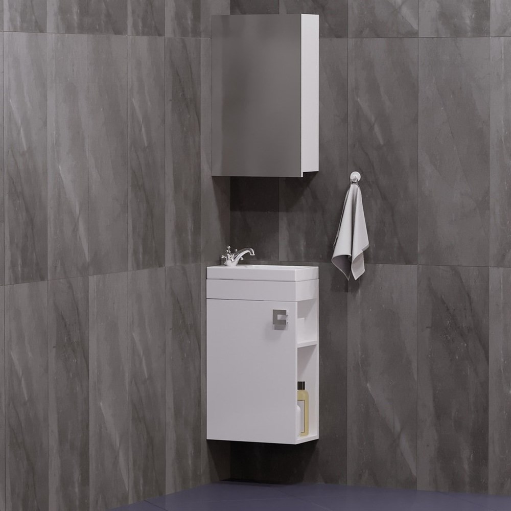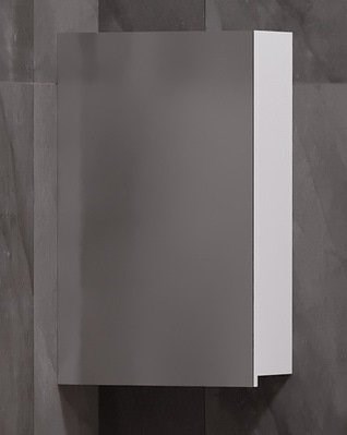 Зеркало-шкаф представляет собой шкаф с дверцей, на которую наклеено зеркало. Позади двери 2 полки. Петли на двери с доводчиками. Зеркало и дверь имеют свис снизу на 19,5 мм, за который дверь можно открыть.