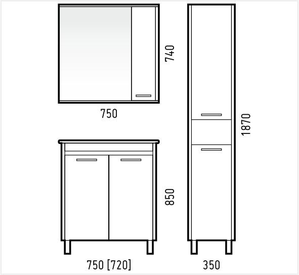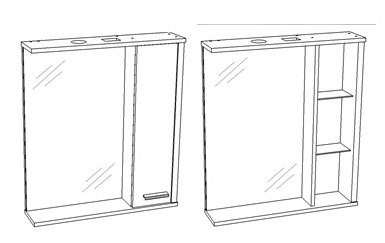 Зеркало-шкаф оснащёно 1 закрытой дверцей. Сзади 2 стеклянные полки. Боковина выполнена из ЛДСП 26 мм толщиной. В верхнюю полку встроен свет.