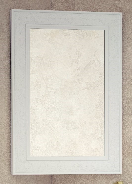 Угловое зеркало-шкаф. За дверью расположено 2 полки (включая дно). Фасадом является багетная рама с зеркалом. Зеркало защищено противоосколочной плёнкой. Зеркало-шкаф является универсальным, то есть перевернув его, возможно повесить шкаф как для правого, так и для левого открывания.