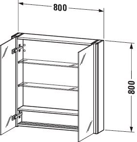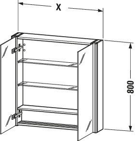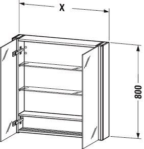 IP 44, двойные полосы LED подсветки, 2 зеркальные дверцы, 2 стеклянные полки (прозрачное стекло), 1 деревянная полка, встроенный волнообразный разделитель для мелочей, задняя стенка внутри с зеркалом, 1 комплект розетки внутри справа, LED подсветка места для умывания, 1 сенсорный выключатель справа внизу, функция LED диммера, LED (срок эксплуатации >30 000 часов), LED подсветка, стационарно установленная, Класс энергопотребления: A++, LED модуль, цветовая температура 3500 К, 27 Вт