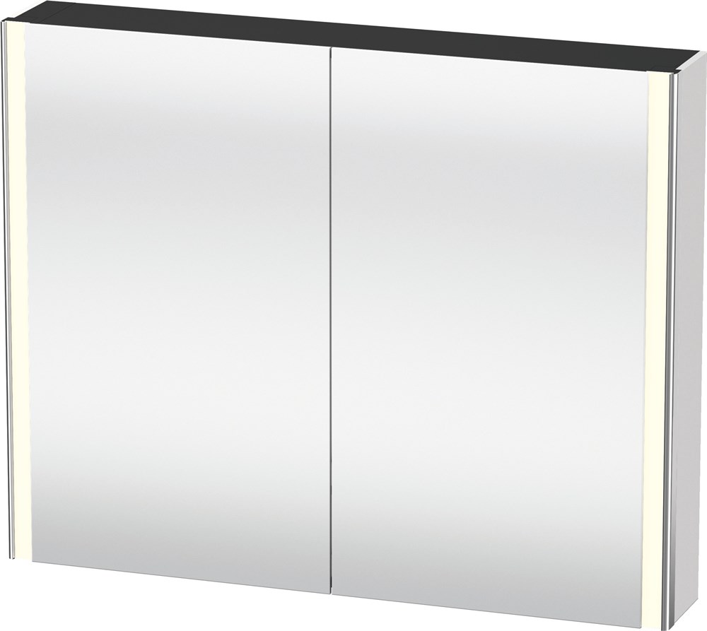 IP 44, двойные полосы LED подсветки, 2 зеркальные дверцы, 2 стеклянные полки (прозрачное стекло), 1 деревянная полка, встроенный волнообразный разделитель для мелочей, задняя стенка внутри с зеркалом, 1 комплект розетки внутри справа, LED подсветка места для умывания, 1 сенсорный выключатель справа внизу, функция LED диммера, LED (срок эксплуатации >30 000 часов), LED подсветка, стационарно установленная, Класс энергопотребления: A++, LED модуль, цветовая температура 3500 К, 27 Вт
