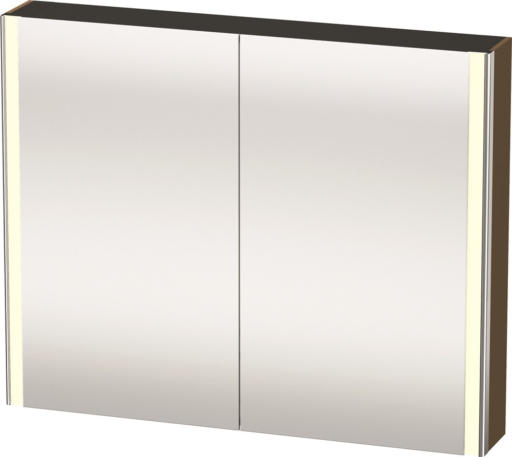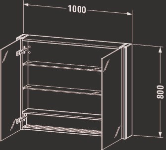 IP 44, двойные полосы LED подсветки, 2 зеркальные дверцы, 2 стеклянные полки (прозрачное стекло), 1 деревянная полка, встроенный волнообразный разделитель для мелочей, задняя стенка внутри с зеркалом, 1 комплект розетки внутри справа, LED подсветка места для умывания, 1 сенсорный выключатель справа внизу, функция LED диммера, LED (срок эксплуатации >30 000 часов), LED подсветка, стационарно установленная, Класс энергопотребления: A++, LED модуль, цветовая температура 3500 К, 27 Вт
