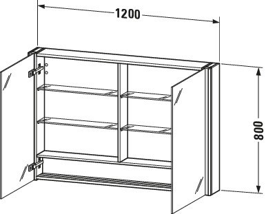 IP 44, двойные полосы LED подсветки, 2 зеркальные дверцы, 2 стеклянные полки (прозрачное стекло), 1 деревянная полка, встроенный волнообразный разделитель для мелочей, задняя стенка внутри с зеркалом, 1 комплект розетки внутри справа, LED подсветка места для умывания, 1 сенсорный выключатель справа внизу, функция LED диммера, LED (срок эксплуатации >30 000 часов), LED подсветка, стационарно установленная, Класс энергопотребления: A++, LED модуль, цветовая температура 3500 К, 27 Вт