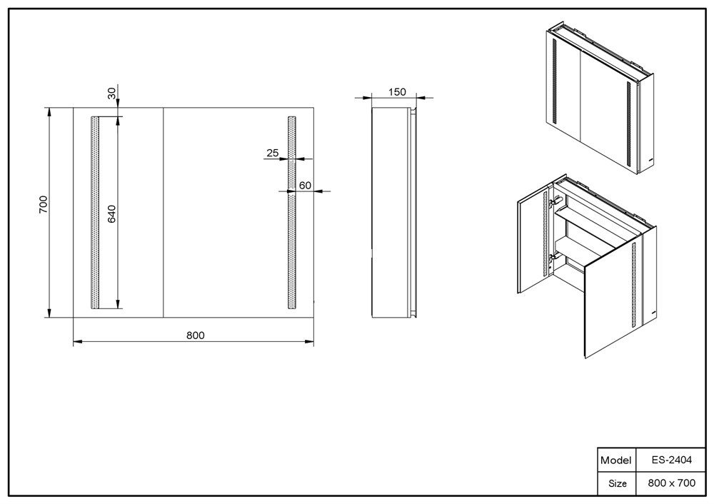 Зеркальный шкаф Esbano ES-2404 (ESMS2404) 80x70 см с подсветкой, выключатель на фотоэлементах