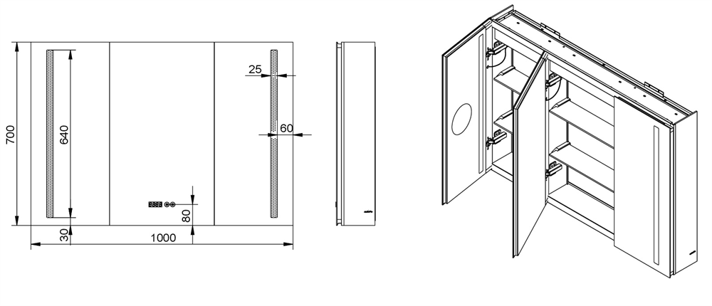 Зеркальный шкаф Esbano ES-2408 (ESMS2408) 100x70x15 с подсветкой