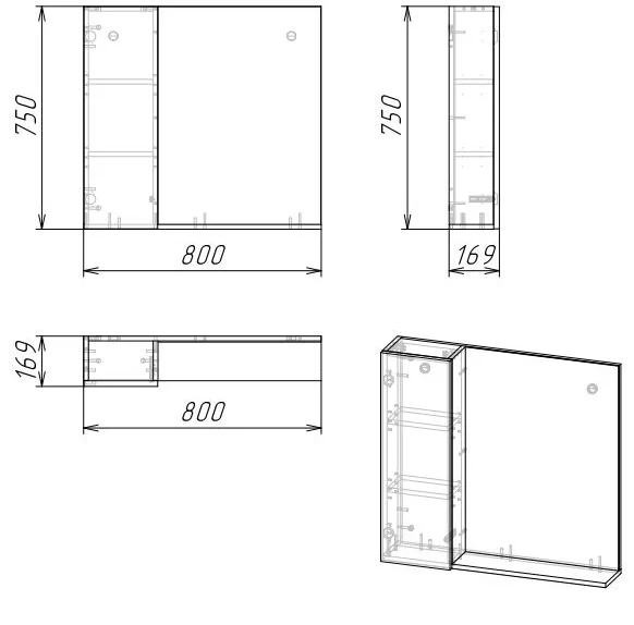 Зеркальный шкаф изготовлен из ЛДСП, устойчивой к механическим воздействиям, перепадам температур и высокой влажности.