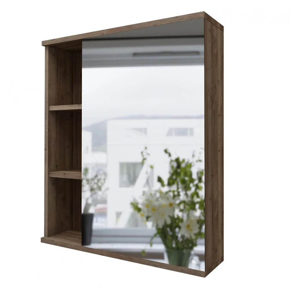Шкаф-зеркало Форта 70 см - роскошная текстура и темный цвет дуба придают зеркалу сочетание современного дизайна.