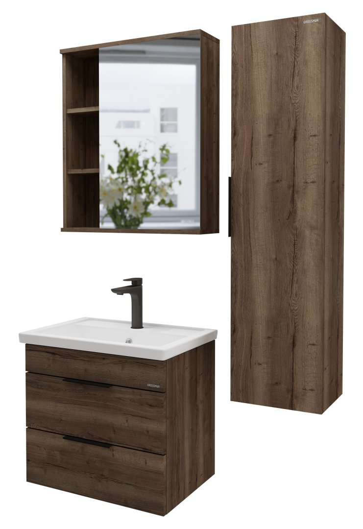 Шкаф-зеркало Форта 70 см - роскошная текстура и темный цвет дуба придают зеркалу сочетание современного дизайна.
