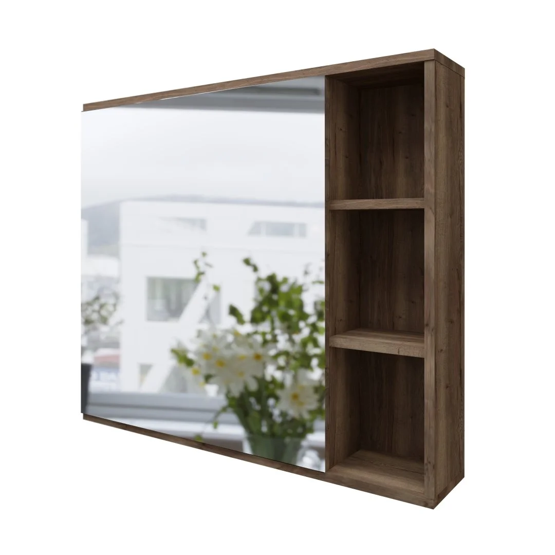 Шкаф-зеркало Форта 80 см - роскошная текстура и темный цвет дуба придают зеркалу сочетание современного дизайна.