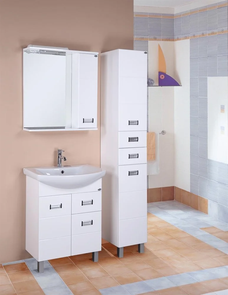 Глянцевый белый цвет, ненавязчивая горизонтальная фрезеровка, стильная врезная хромированная фурнитура и аккуратная лаконичность - все это позволяет коллекции Балтика стать центральным звеном интерьера ванной комнаты.