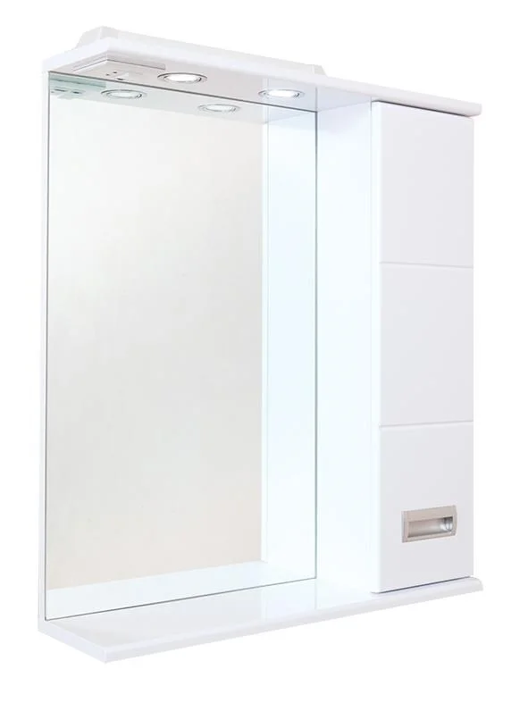 Корпус шкафа-зеркала выполнен из ЛДСП, фасад - из МДФ в пленке, устойчивых к механическим воздействиям, перепадам температур и высокой влажности.