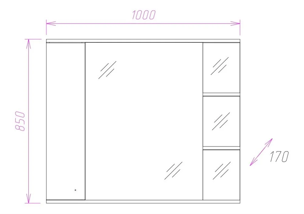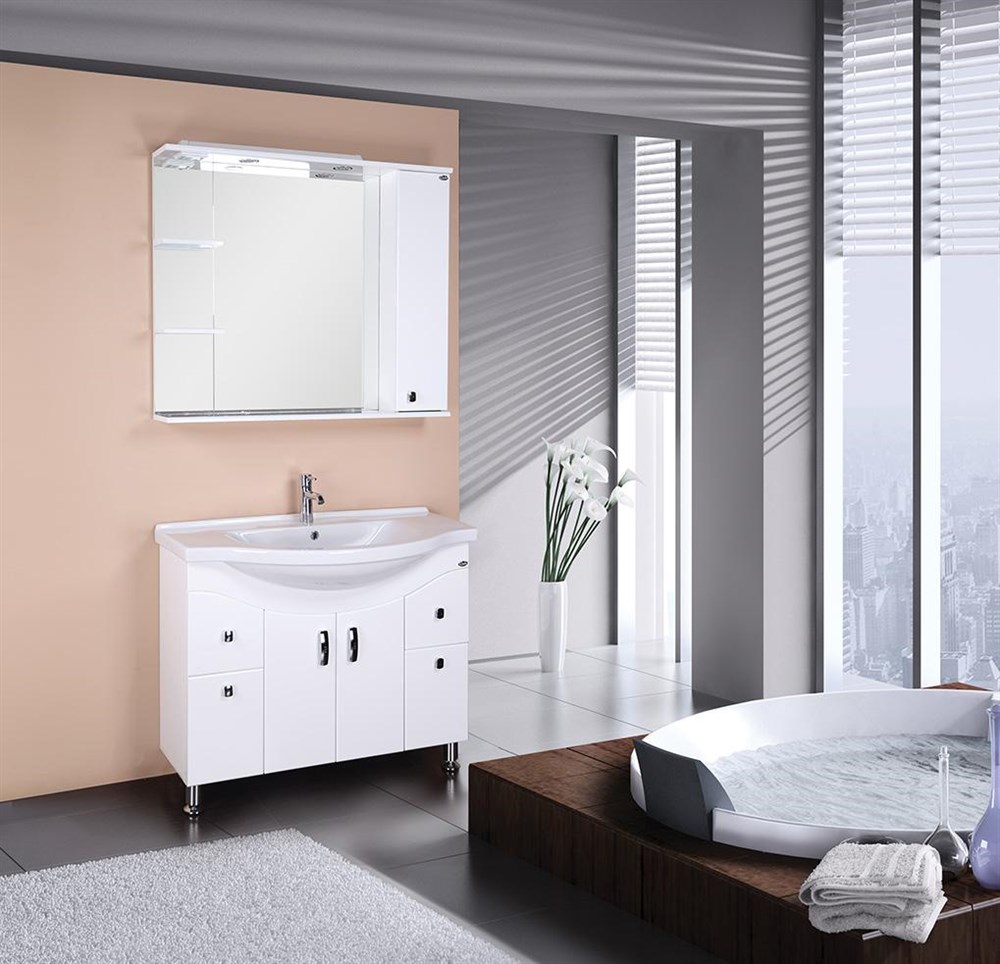 В зеркальном подвесном шкафе Onika ЭЛЬБРУС 100.02 белоснежный глянец фасада подчеркивается оригинальной хромированной фурнитурой и простой изысканной геометрией линий.