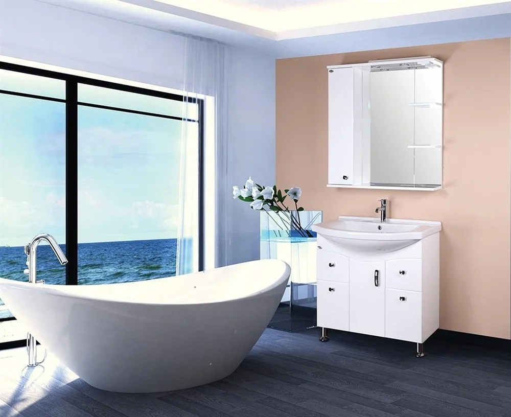 Корпус шкафа-зеркала выполнен из ЛДСП, фасад - из МДФ в пленке, устойчивых к механическим воздействиям, перепадам температур и высокой влажности.