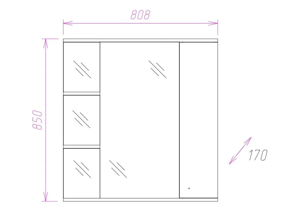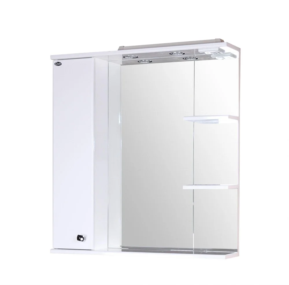 В зеркальном подвесном шкафе Onika ЭЛЬБРУС 80.02 белоснежный глянец фасада подчеркивается оригинальной хромированной фурнитурой и простой изысканной геометрией линий.