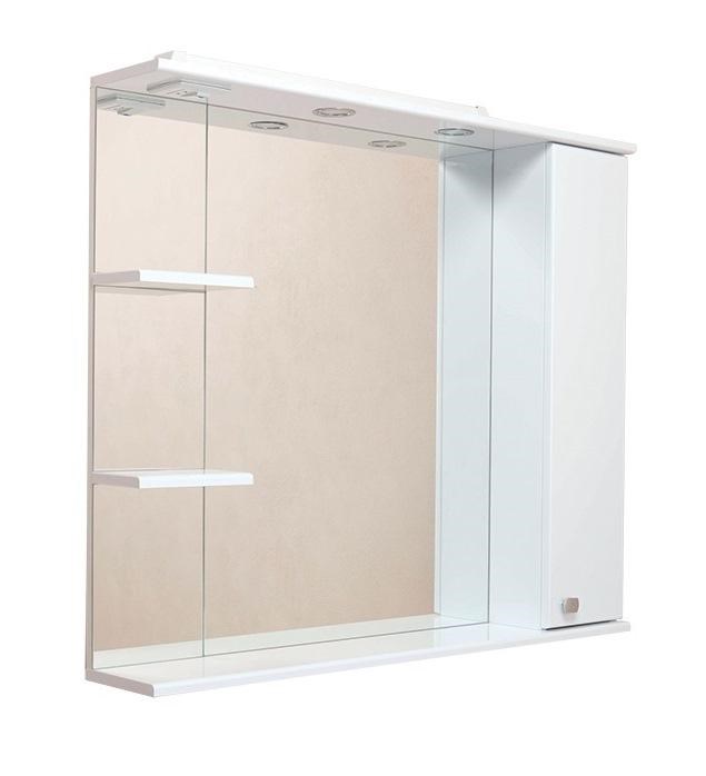 В зеркальном подвесном шкафе Onika ЭЛЬБРУС 90.02 белоснежный глянец фасада подчеркивается оригинальной хромированной фурнитурой и простой изысканной геометрией линий.