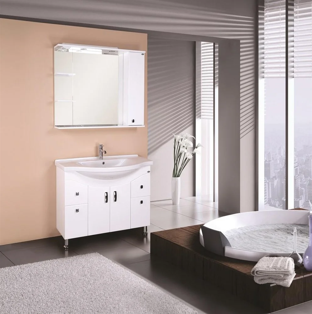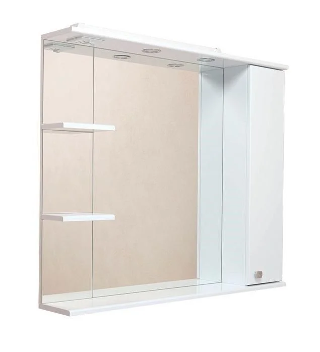 Корпус шкафа-зеркала выполнен из ЛДСП, фасад - из МДФ в пленке, устойчивых к механическим воздействиям, перепадам температур и высокой влажности.
