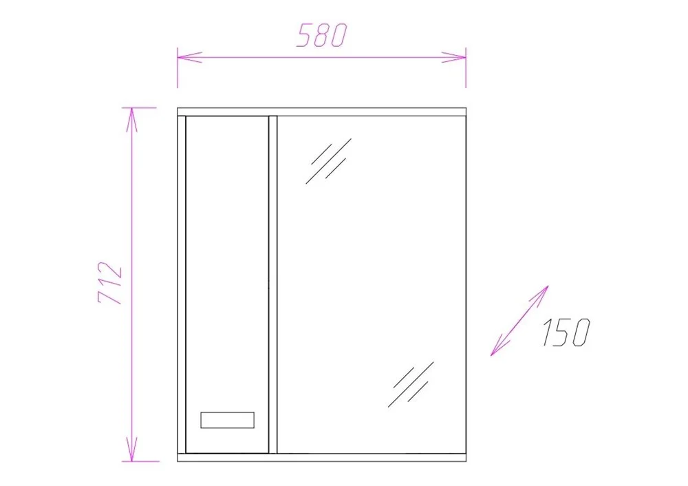 Шкаф-зеркало выполнен из ЛДСП, устойчивой к механическим воздействиям, перепадам температур и высокой влажности.