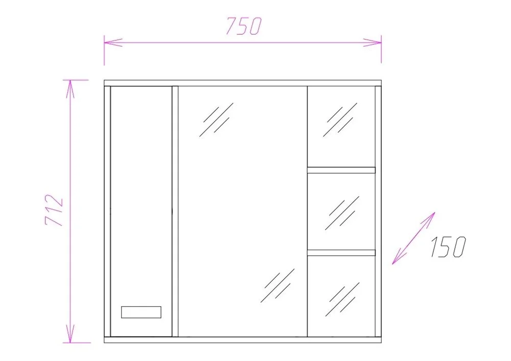 Шкаф-зеркало выполнен из ЛДСП, устойчивой к механическим воздействиям, перепадам температур и высокой влажности.