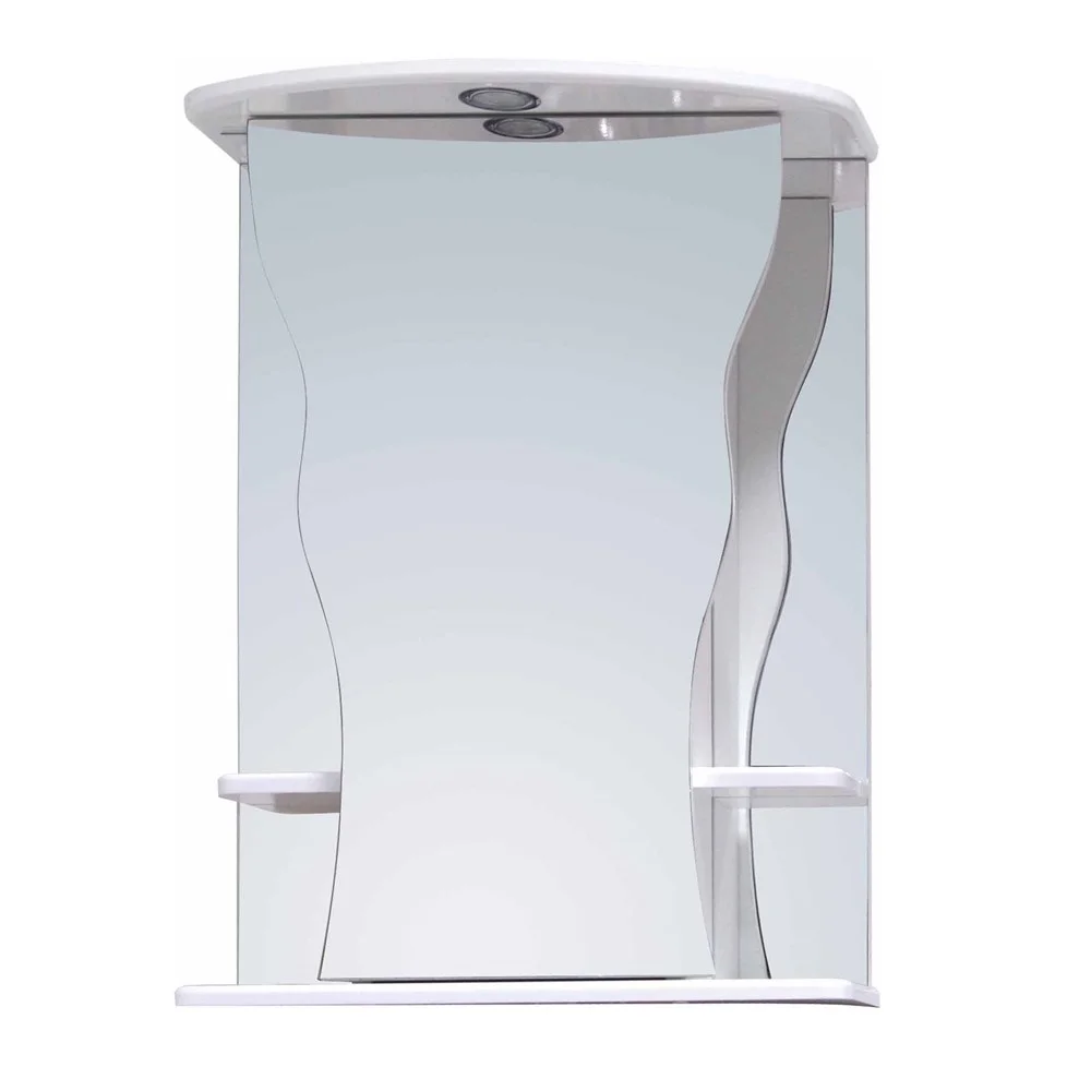 Строгий белый цвет навесного шкафа Onika КАПРИЗ 55.01 в сочетании с причудливой формой зеркала добавит изюминки в дизайн ванной комнаты.