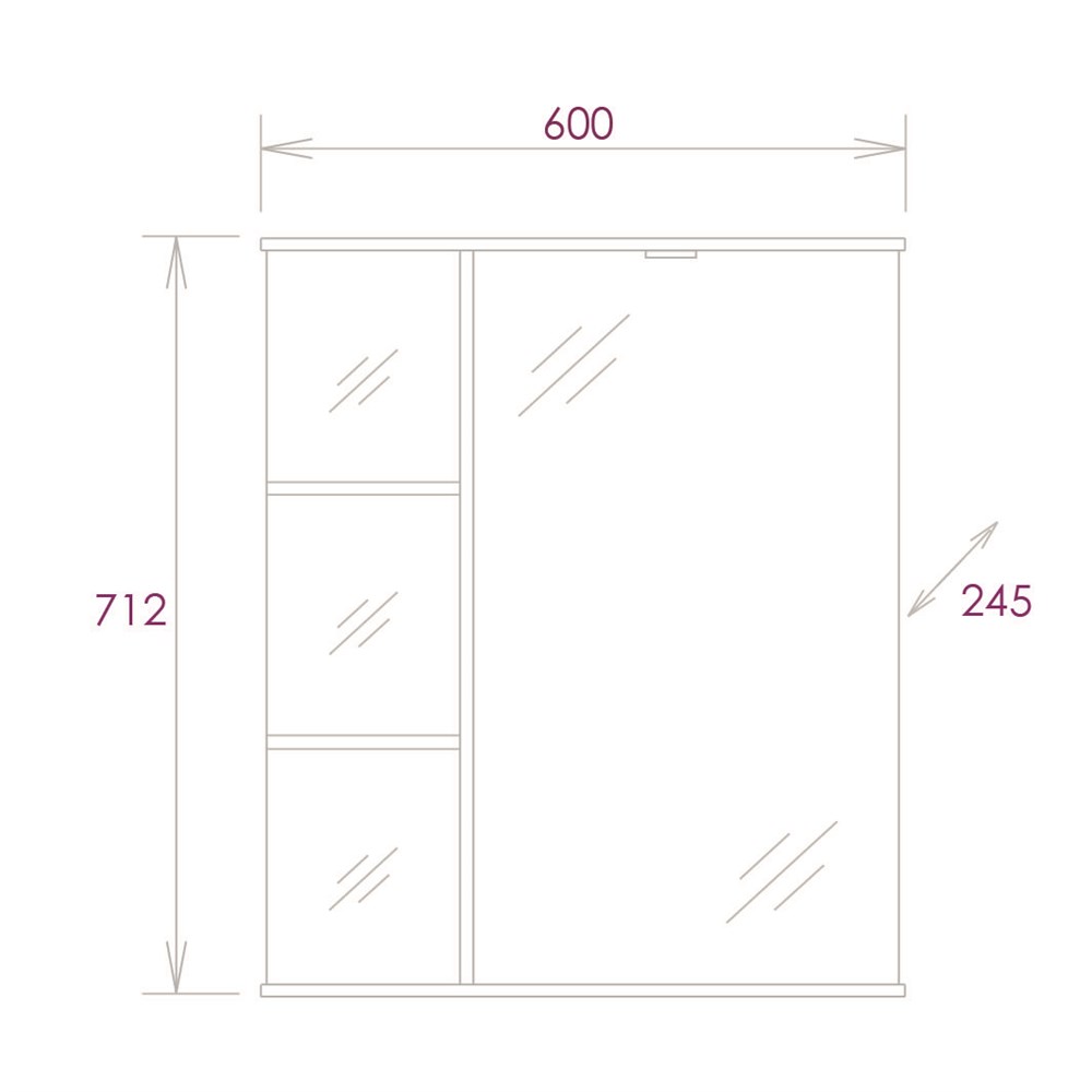 Открытые полочки слева обеспечивают быстрый доступ к часто используемым аксессуарам, а пространство за распашной зеркальной дверцей с механизмом плавного закрывания, разделенное полочкой, станет удобным местом для хранения различных бытовых принадлежностей.