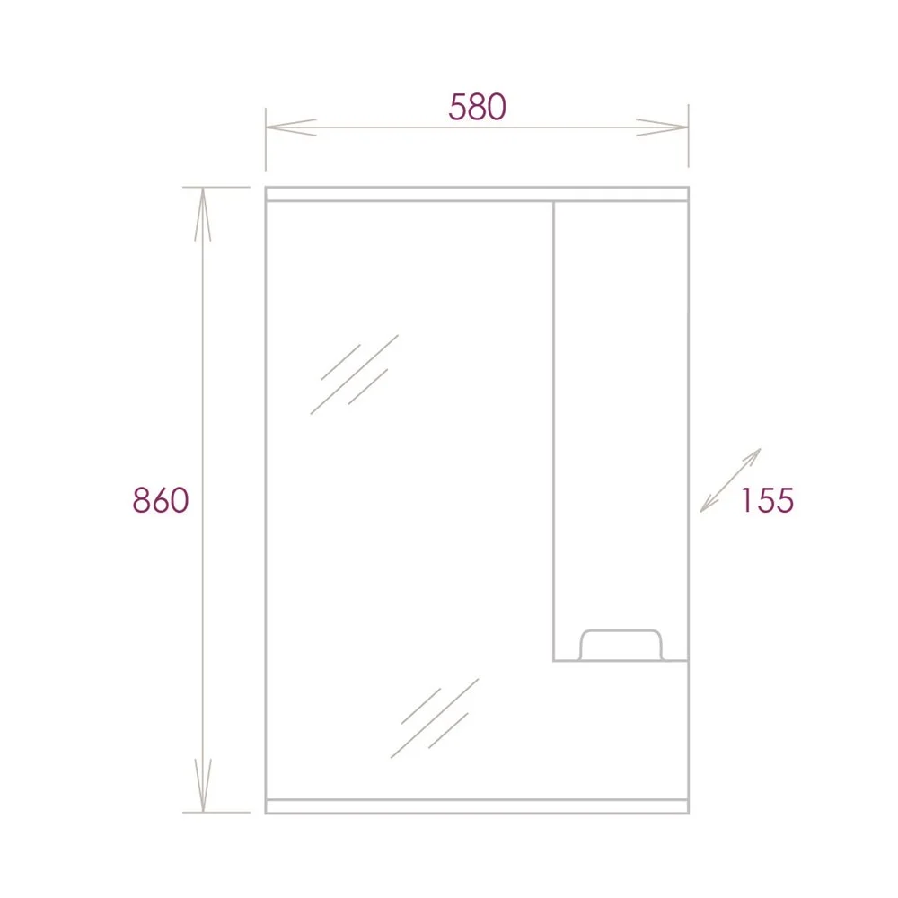 Современный функционал шкафа позволяет удобно расположить все необходимое: справа от зеркала за распашной дверцей с механизмом плавного закрывания расположено отделение для хранения, разделенное на две части горизонтальной полочкой, а под зеркалом - открытая полочка для косметических средств или декоративных элементов.