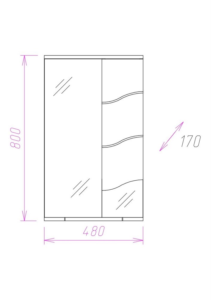 Корпус шкафа-зеркала выполнен из ЛДСП, фасад - из МДФ в пленке, устойчивых к механическим воздействиям, перепадам температур и высокой влажности.