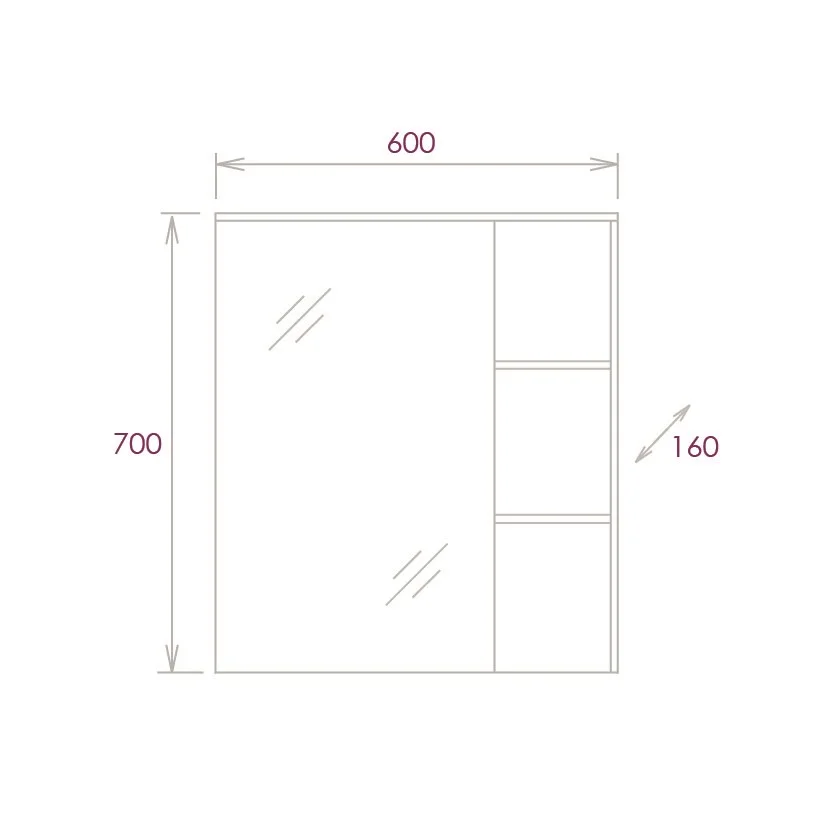 Зеркальный шкаф выполнен из ЛДСП, устойчивой к механическим воздействиям, перепадам температур и высокой влажности.