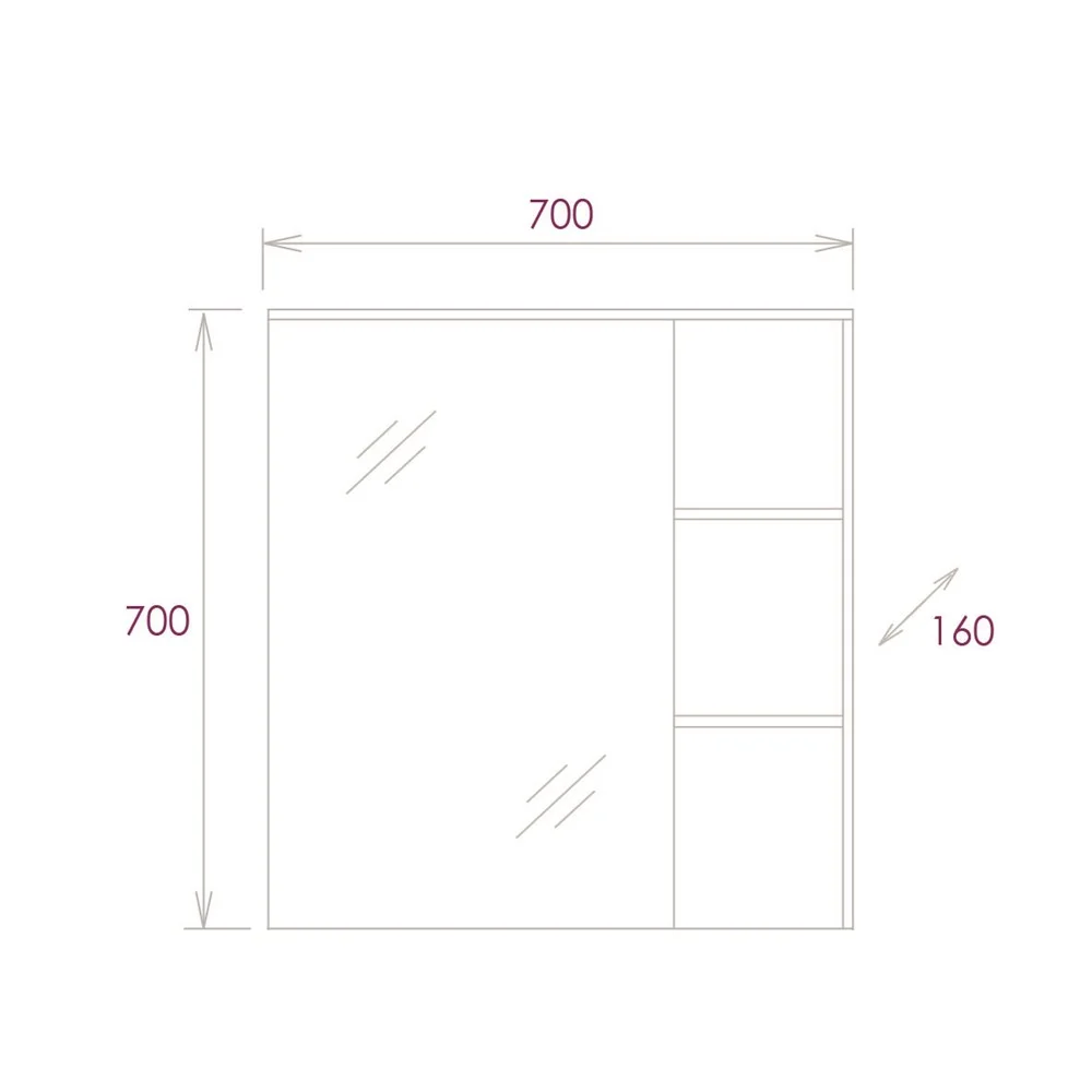 Зеркальный шкаф выполнен из ЛДСП, устойчивой к механическим воздействиям, перепадам температур и высокой влажности.