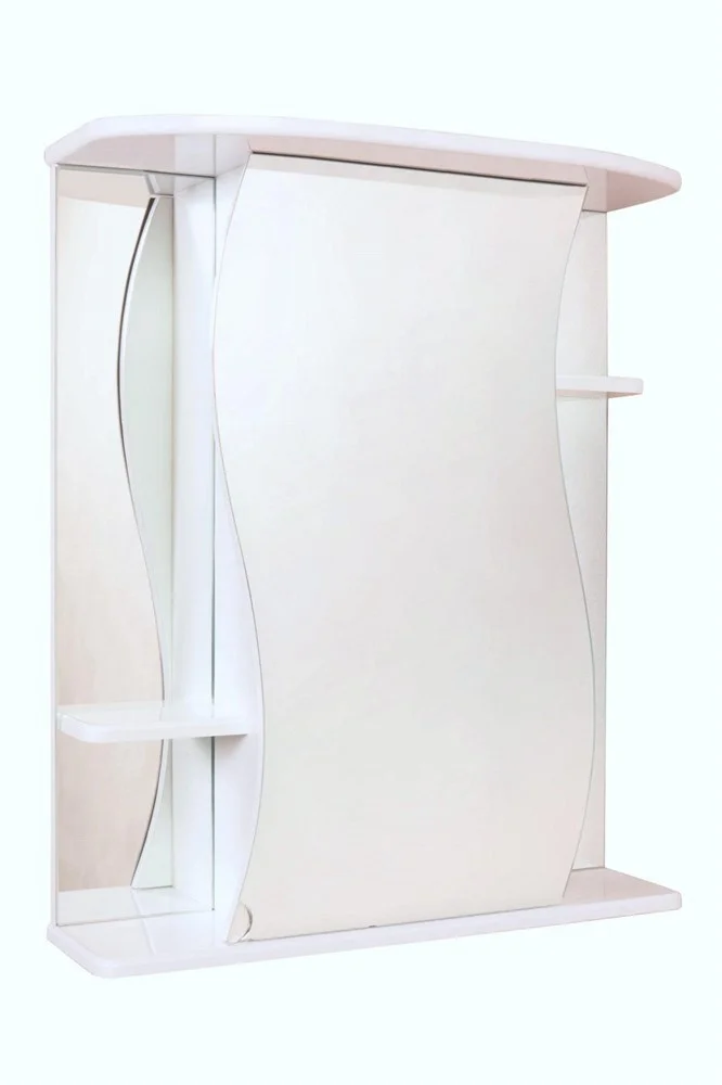 Зеркальный шкаф ЛИЛИЯ 55.00 У способен преобразить ванную комнату: эстетика изогнутой линии воплощается в мягкой волнообразной форме дверцы и исполняет роль основного выразительного элемента, создающего свободное, подвижное и функциональное пространство.