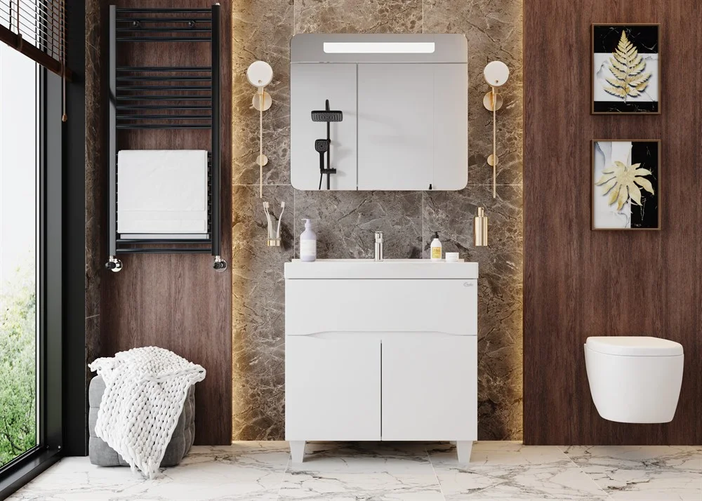Шкаф-зеркало выполнен из ЛДСП, покрытой краской и устойчивой к механическим воздействиям, перепадам температур и высокой влажности.
