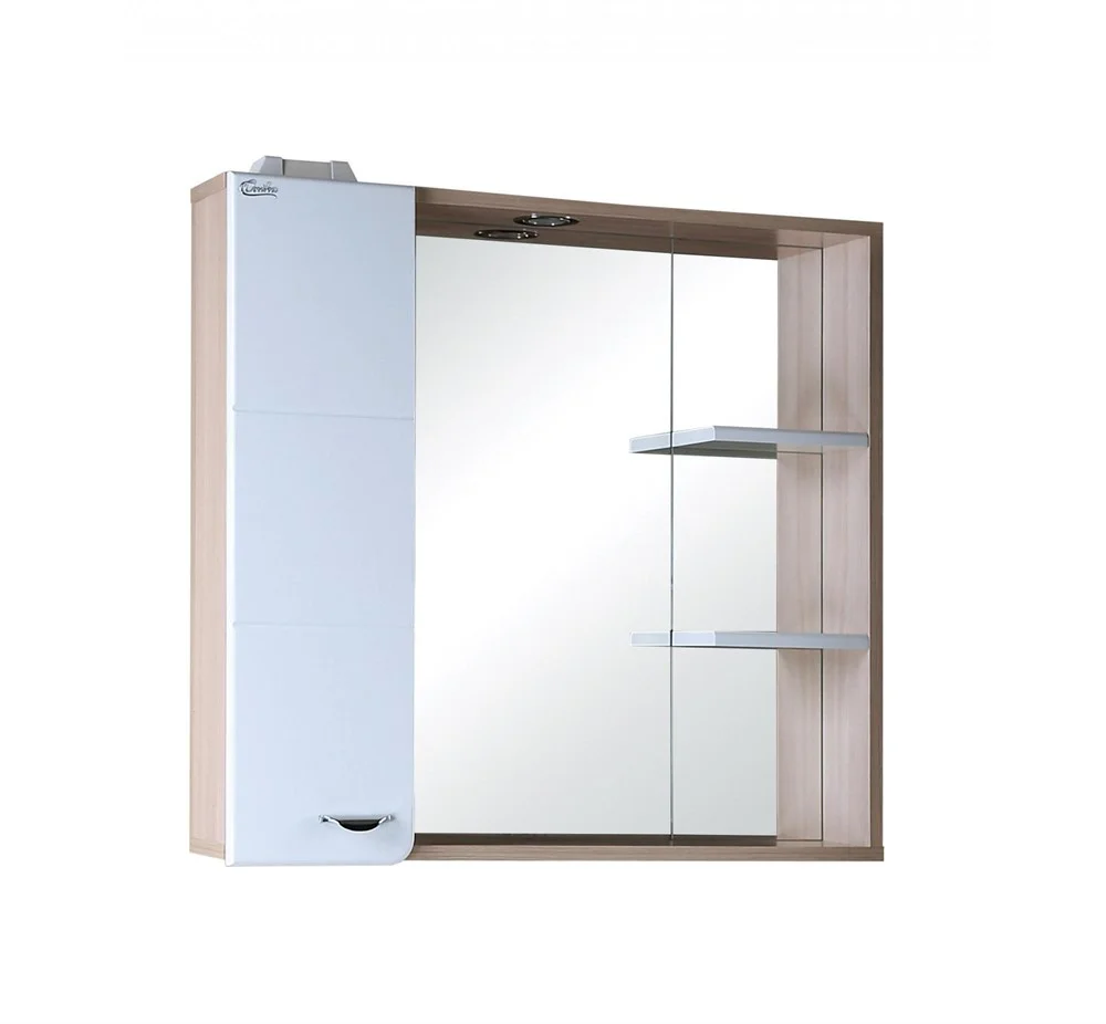 Шкаф-зеркало для ванной комнаты Onika СТИЛЬ 75.01 гармонично сочетает контрастные цвета и фактуры: белый глянец на фоне светлого натурального дерева очень эффектно смотрится в любых интерьерах.