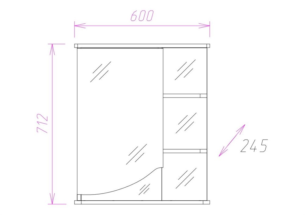 Зеркальный шкаф Onika ВИОЛА 60.01 в левом исполнении подойдет к любому стилю ванной комнаты и будет прекрасно гармонировать с любой мебелью в том же глянцевом белом цвете.