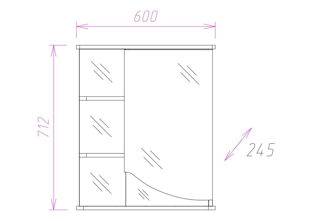 Зеркальный шкаф Onika ВИОЛА 60.01 в правом исполнении подойдет к любому стилю ванной комнаты и будет прекрасно гармонировать с любой мебелью в том же глянцевом белом цвете.