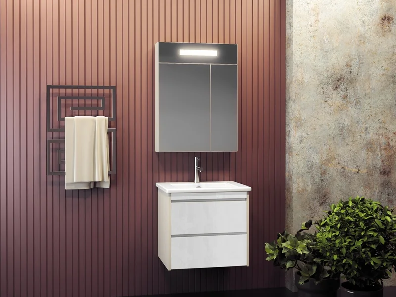 Стильная коллекция «Фреш» сдержанна и лаконична. Фасад выполнен из глянцевого стекла, созданного по технологии Лакобель, предлагается в нескольких цветовых решениях. Подвесная тумба с двумя выдвижными ящиками с механизмом «плавного закрывания» с керамической раковиной. Оригинальной деталью коллекции являются утопленные ручки из алюминиевого профиля. Отличительной особенностью коллекции, является удобный зеркальный шкаф, состоящий из трех или двух створок, дающих возможность грамотно использовать пространство ванной комнаты. В шкафчике имеется встроенная горизонтальная подсветка.