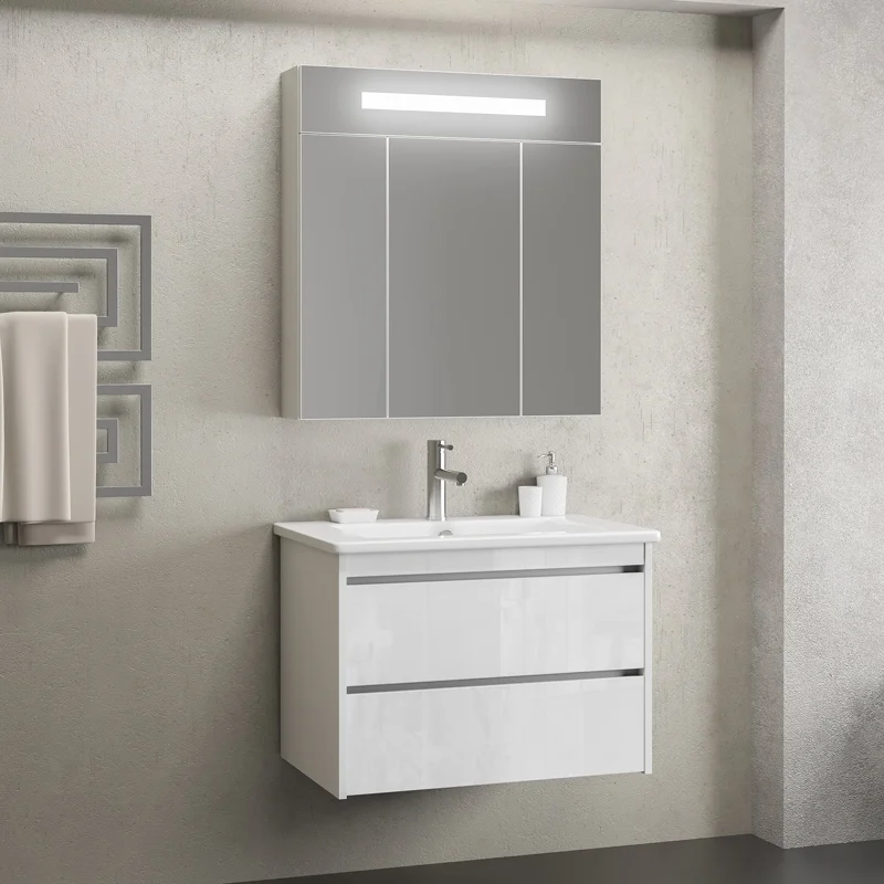 Стильная коллекция «Фреш» сдержанна и лаконична. Фасад выполнен из глянцевого стекла, созданного по технологии Лакобель, предлагается в нескольких цветовых решениях. Подвесная тумба с двумя выдвижными ящиками с механизмом «плавного закрывания» с керамической раковиной. Оригинальной деталью коллекции являются утопленные ручки из алюминиевого профиля. Отличительной особенностью коллекции, является удобный зеркальный шкаф, состоящий из трех или двух створок, дающих возможность грамотно использовать пространство ванной комнаты. В шкафчике имеется встроенная горизонтальная подсветка.
