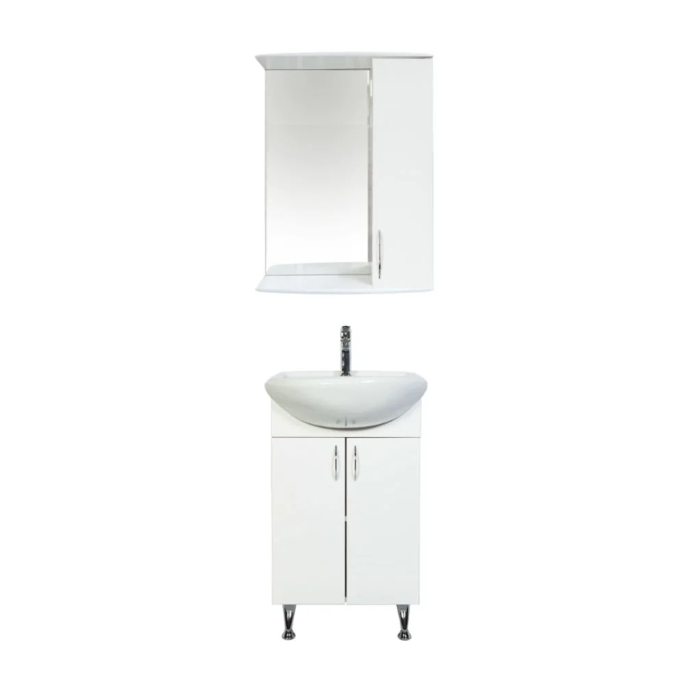 Зеркальный шкаф универсальный. Фасад зеркальное полотно и МДФ в пленке - белый глянец, корпус ЛДСП - белый глянец. Дверца с механизмом доводчика, обеспечивающим плавное закрывание. В комплекте внутренняя полочка. Фурнитура в цвете хром.