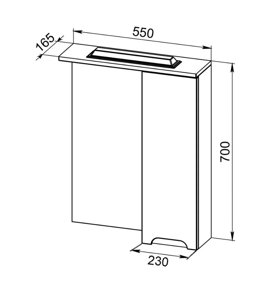 Зеркало со шкафчиком с правой стороны. Фасад зеркальное полотно, МДФ 16 мм в эмали (белый глянец, производство - Италия). Корпус ЛМДФ 16 мм. Дверца с механизмом плавного доведения. Розетка и выключатель со встроенным светильником LED (4W), две стеклянные полочки. Навесы усиленные с планкой.